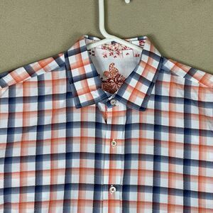 Robert Graham Shirt Mens XXL White Blue Red Plaid Button Up Casual Adult
