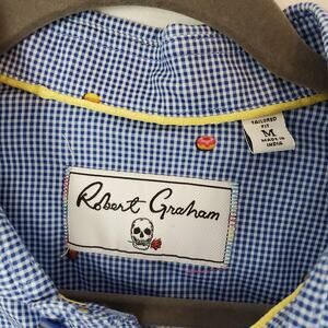 Robert Graham Shirt Tailored Fit Gingham Plaid Fast Food Novelty Print Blue