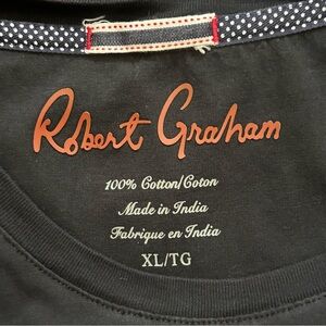 Good condition. Men’s Robert Graham short sleeve, crewneck tee. Elevate your style with this t-shirt featuring a vibrant graphic design. Perfect for casual outings.