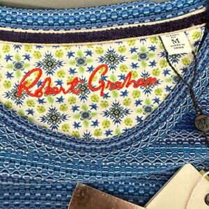 Robert Graham Short Sleeve Knit Crew Neck T-Shirt OSWALD Royal Navy Geometric Stripe M