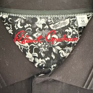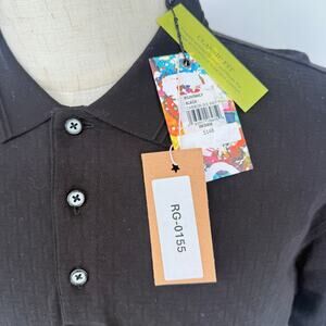 Robert Graham Short Sleeve Knit Polo Shirt CARBON Solid Black Jacquard M