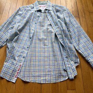 Robert Graham Size M Blue & Green Check Classic Fit Long Sleeve Button-Up Shirt