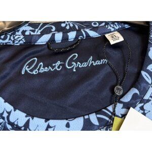 • Unique Print: Features an intricate, all-over Paisley Tile Print in shades of blue and navy. This bold yet sophisticated pattern is a classic Robert Graham signature look.