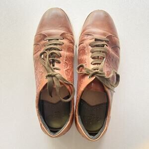 ROBERT GRAHAM Shoes Brown Leather Low Top Embossed Skull & Filigree Sneaker M 10.5