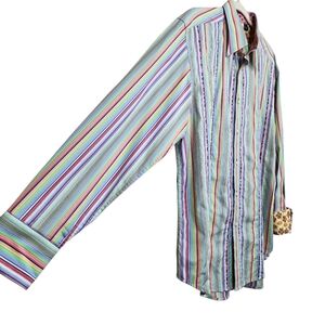 Robert Graham Stripes Paisley Flip Sleeve Button Up Shirt Men's Size L