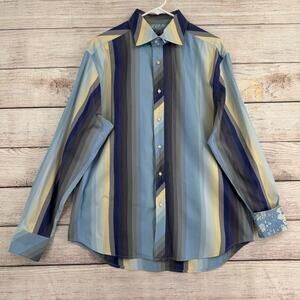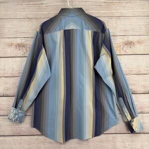 Item: Robert Graham Striped Floral Flip Cuff Button Down Shirt Men's XL Blue/Cream