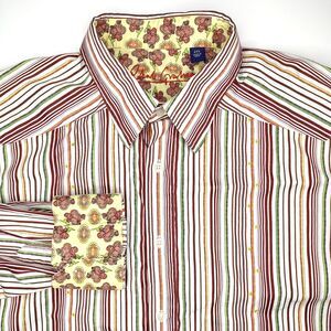 Robert Graham Striped Floral Flip Cuff Button Front Shirt Mens Size 2XL
