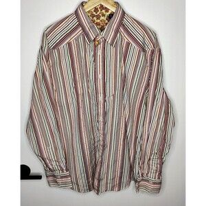 Robert Graham Multicolor Striped Floral Flip Cuff Button Front Shirt Mens Sz 2XL. Good pre-owned condition. See last photo for measurements.