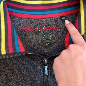 Robert Graham Sweater Mens Medium Cotton 1/4 Zip Mock Neck Pullover in Gray