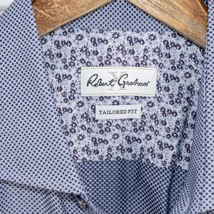 Robert Graham Men's Tailored Fit Button up Shirt in Blue mini check sz 17.5