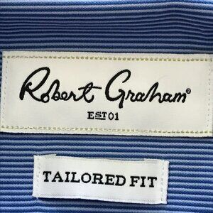 Robert Graham Tailored Fit Shirt Men L Blue Striped Button Up Long Sleeve 16687