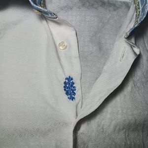 Robert Graham Textured Jacquard Pattern Shirt Medium White Embroidered Flip Cuff