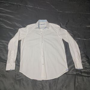 Elevate your wardrobe with this genuine Robert Graham long sleeve dress shirt, tailored in size Medium for men.