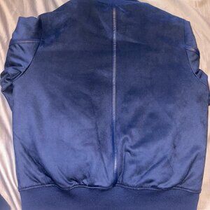 Robert Graham Vegan Faux Suede Navy Blue Quilt Lined Zip Up Bomber Jacket M NEW