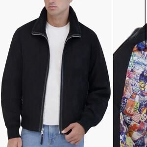 Robert Graham Vegan Suede Insulated Zip Up Black Bomber Jacket Medium NEW Sherpa