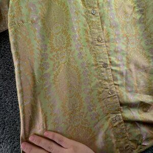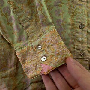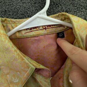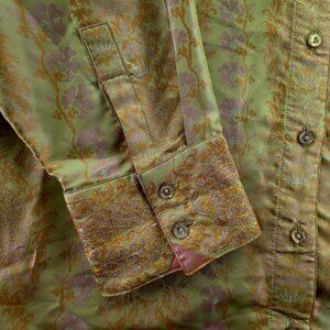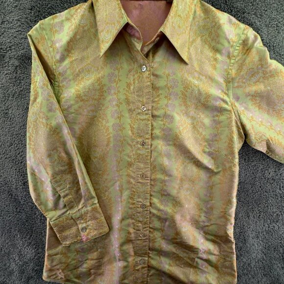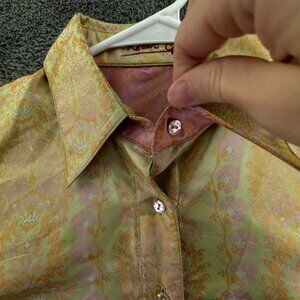 Robert Graham Women Shiny Floral Print Button Up Small Shirt Green Pink L/S