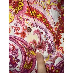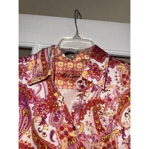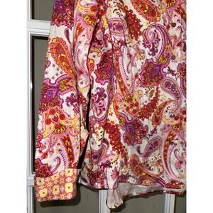 Robert Graham Women's Cotton Button Down Shirt XL Paisley Hippie Boho Flip Cuff