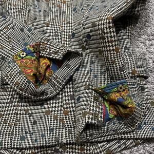 Robert Graham Wool Blazer Suit Jacket Herringbone Geometric Pattern Snap Button Size 4 Womens