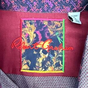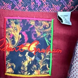 Robert Graham Woven Button Front Long Sleeve Shirt Boden Textured Red Burgundy M