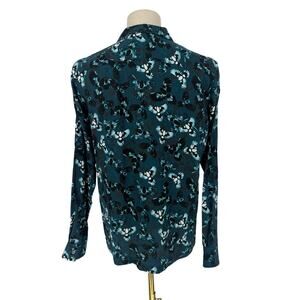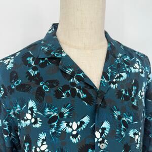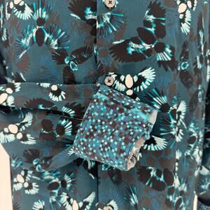 Robert Graham Woven Button Front Long Sleeve Shirt LABREA Dark Teal Abstract Bird Print M
