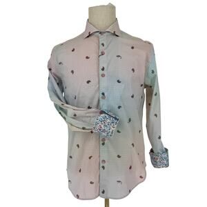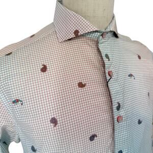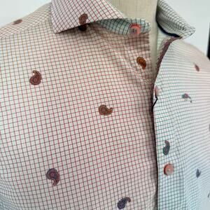 Robert Graham Woven Button Front Long Sleeve Shirt Rainbow Check Paisley Print M