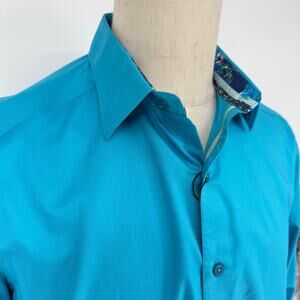 Robert Graham Woven Button Front Long Sleeve Shirt Rutherford AZUL Bright Blue M