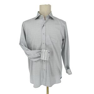 Robert Graham Woven Button Front Long Sleeve Casual Shirt Tharpe White Geometric Print M