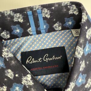 Robert Graham Woven Button Front Long SleeveShirt Black Navy Geometric Print M