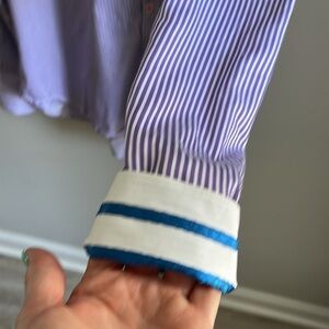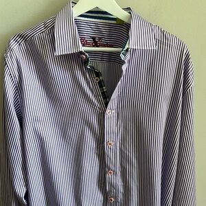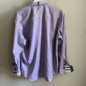 Robert Graham X Casual Button Down Shirt Striped Flip Cuff Size Large Purple