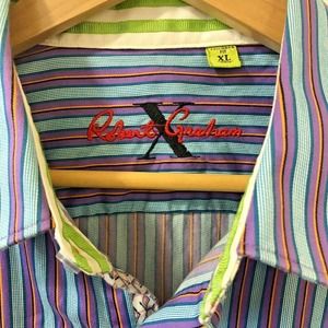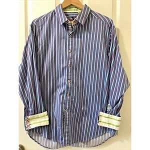 Robert Graham X Collection Shirt Long Sleeve Blue Purple Flip Cuffs Green Sz XL