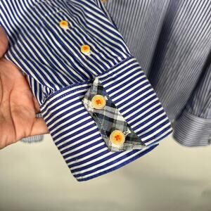 Robert Graham X Men's Button Up Shirt 2XL White Blue Stripe Flip Cuff Tartan