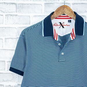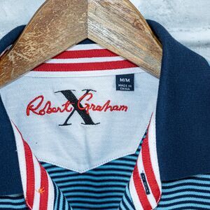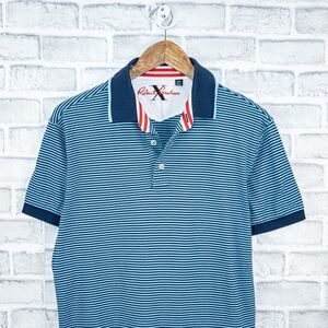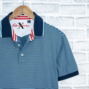 Robert Graham X Men's Short Sleeve Polo Shirt in Blue striped cotton size Medium