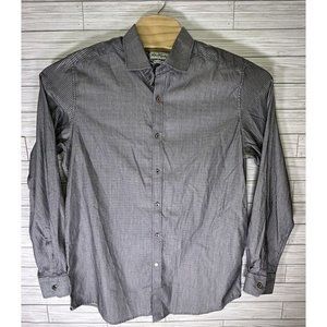 Robert Graham X Tailored Fit Button Up Mens Size 46/18 100% Cotton Gray White