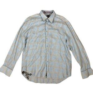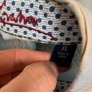 Robert Graham XL Linen Button Up Shirt Geometric Embroidered Luxury Casual