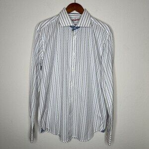 Robert Graham button down Striped white Shirt Sz L/XL