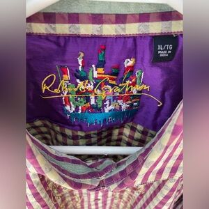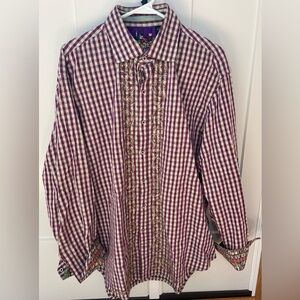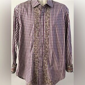 Robert Graham button down shirt purple checks embroidered flip cuffs XL