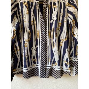Robert Graham equestrian Belt Print Button Shirt Womens Flip Cuff Preppy Designe