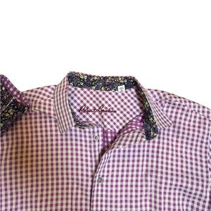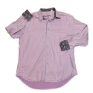 Robert Graham flip cuff gingham button long sleeve shirt size large embroidered