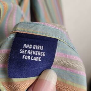 Robert Graham green pink striped button up shirt Size Large long sleeve Dopamine