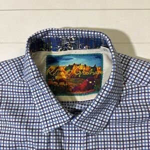 Robert Graham mens XL classic fit blue geo pattern flip cuff button up shirt EUC