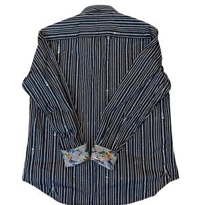 Robert Graham zipper novelty print roll cuff long sleeve men black button down M