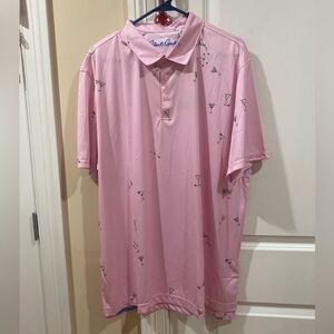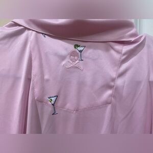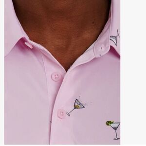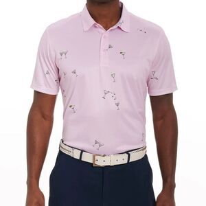 . The Gibson polo is built with a performance stretch material that is moisture wicking, breathable and comes with UV protection that will keep golfers dry and comfortable throughout the round and protected from the harmful UV rays of the sun. The mid-century cocktails pattern and logo engraved buttons will provide a touch of style that will have you looking good on and off the golf course. This polo pairs well with shorts or pants and will also look great with a tailored Robert Graham sport coat.