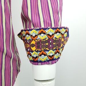 Robert Graham Purple Green Striped Button Down Shirt Embroidered Flip Cuff Small