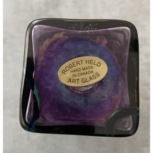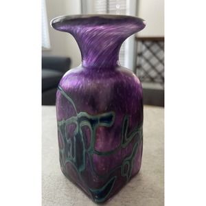 Robert Held 4” Small Triangular Purple Bud Vase w/Iridescent Swirl Design SIGNED