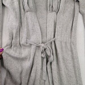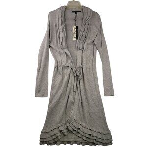 Robert Kitchen Canada Gray Cardigan Sweater Ruffle Trim Open Front With Tie Medium