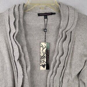 Robert Kitchen Canada Gray Cardigan Sweater Ruffle Trim Open Front With Tie M