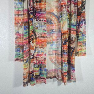 Robert Kitchen Canada Large Sheer Open Cardigan Sweater Multicolor Abstract Mid Length. Pre-owned