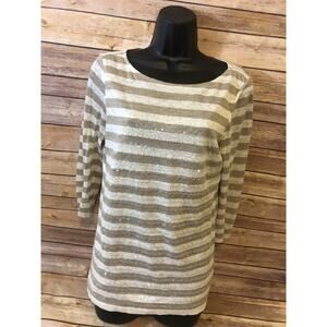 Robert Kitchen Canada Womens Shirt Size Small Blouse Sequin Striped 3/4 Sleeve