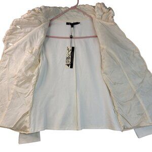 Robert Kitchen Quilted Button Front Cream Jacket M Lightweight Textured Poly-Cotton