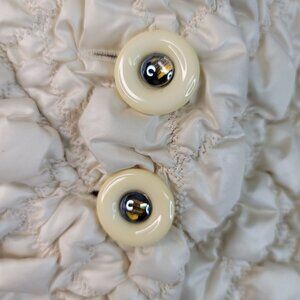 Robert Kitchen Quilted Puffer Jacket Medium Textured Cotton Button Cream
